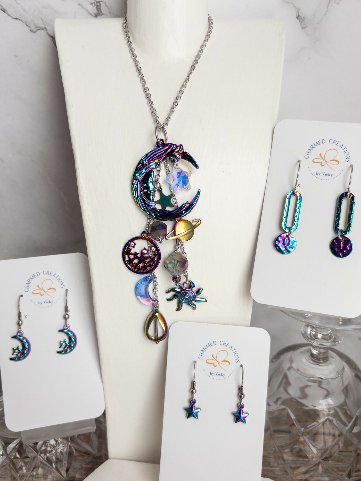 Rainbow Plated Pendants and Earrings